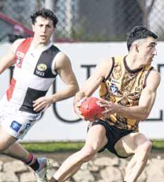 The Hawks’ second term was a delight to watch for spectators as the home side piled on 7.7 to Myrtleford’s two goals to set the victory up.