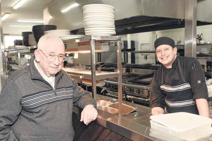 MY COMPLIMENTS TO THE CHEF: Regular diner at the Pinsent Hotel James Hoysted checks out the specials with head chef Matthew Cryer. The hotel is holding a special birthday celebration this Saturday night which features a three course meal, discount drinks and top class entertainment.