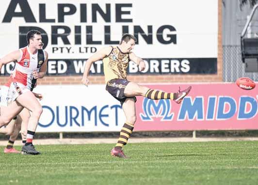 ON THE BOOT: Murray Waite was one of Wangaratta’s best in their 71-point win over North Albury. PHOTOS: Melissa Beattie