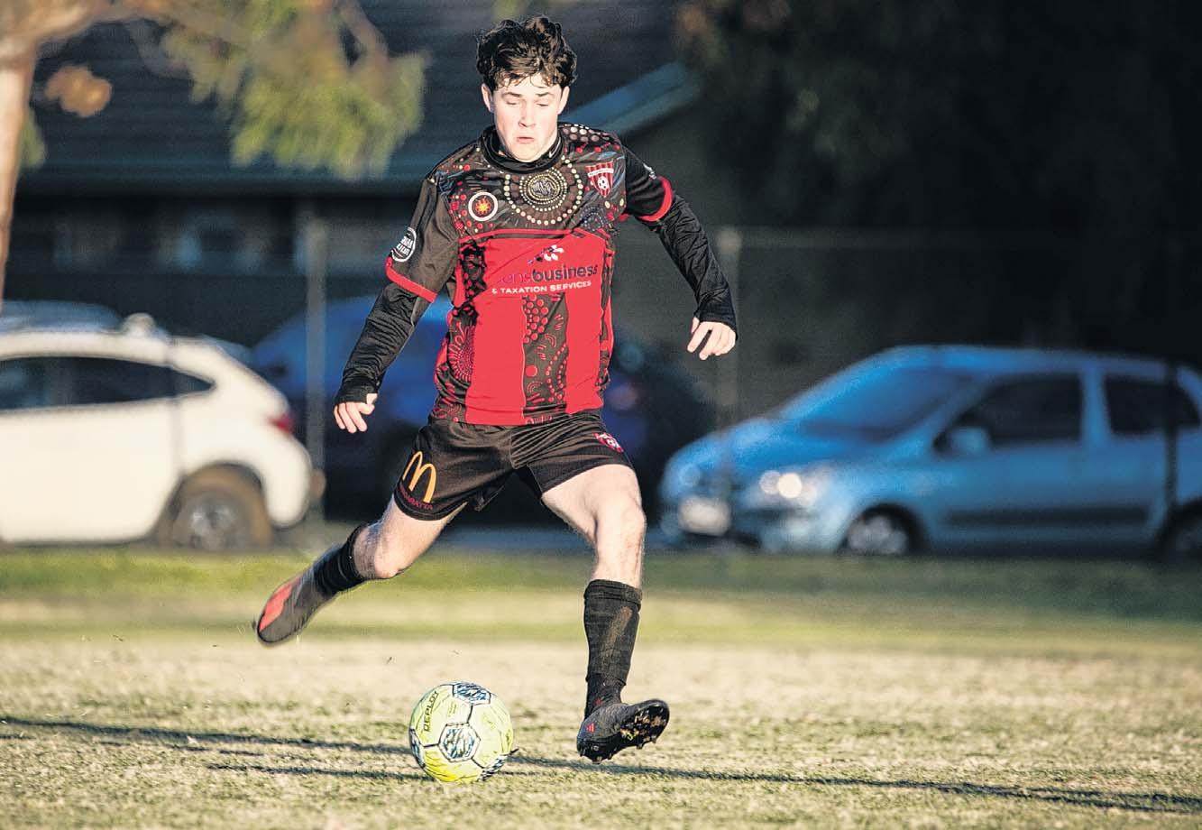 LONE SCORER: James O’Callaghan scored Wangaratta City’s only goal in their 1-1 draw to Albury City. PHOTOS: Kat De Naps Photography