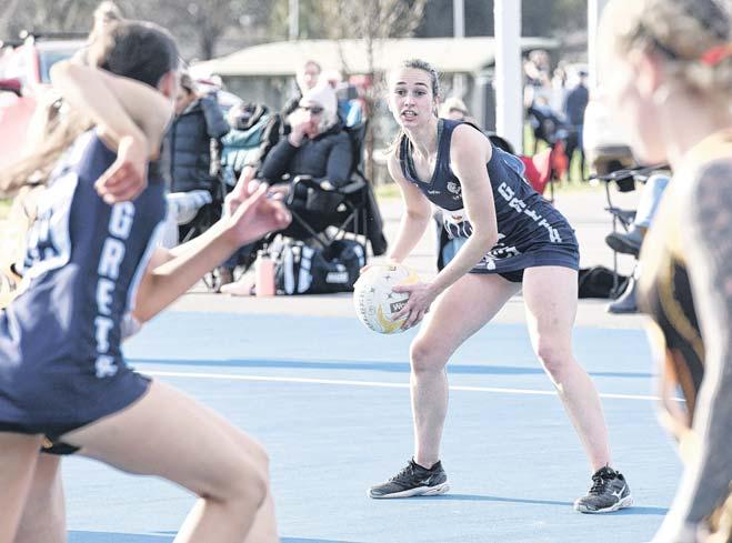 ADVANCE: Milly Mathewson drives Greta through the midcourt in their 77-25 win over North Wangaratta