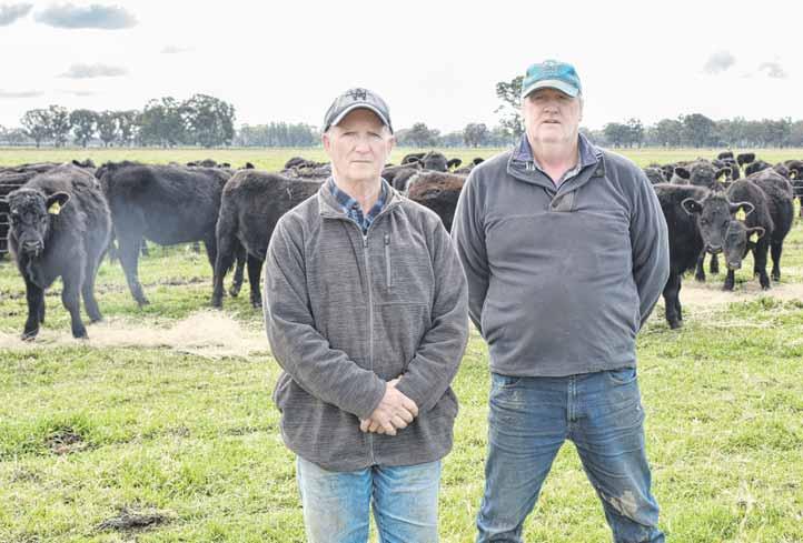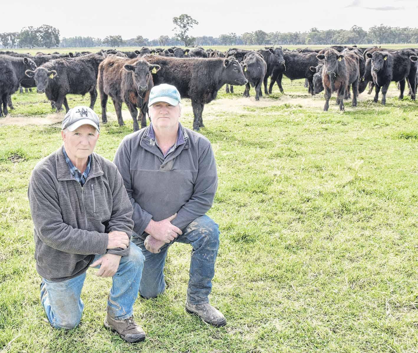 TOP STEERS: Robert and Craig Ferguson with some of their 230 Bowmans Forest steers to go under the hammer in Wangaratta on Friday.