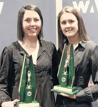 FAY MORGAN MEDALLIST: Tegan White (left) took out the A grade netball’s top prize, while Sophie Morey finished runner-up.