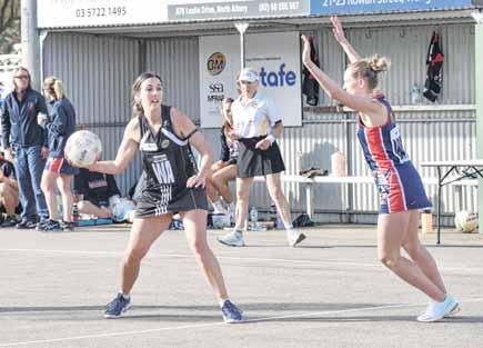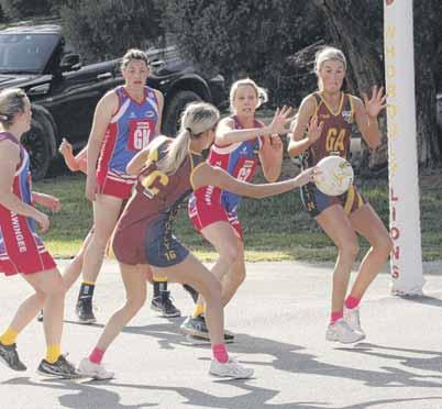 Netball regular season wraps up BY NATHAN DE VRIES nemedia.com.aundevries@ SATURDAY’S final round of the Ovens and King home and away season gave some teams a last hurrah in a phenomenal season of netball, while others used it to polish their shills ahead of a finals campaign.Thematch of the round in A grade was played at Whorouly, where the Lions held off fellow finals-bound squad Tarrawingee to take the win 48-46. The two sides were neckand-neck by the first break, before Whorouly tore out to a four goal lead by half-time. The struggle continued through the third quarter, with shooters and defenders at both ends of the court causing trouble for their opponent.Asthe final quarter entered its dying minutes, Tarrawingee pegged two goals back at Whorouly, but couldn’t overcome the total, the Lions home by two. Whorouly co-coach Ebony Allen said while her side picked up the win, the hardfought nature of the match was a perfect primer for the intensity of finals netball. “Tarrawingee are a very good side, so we definitely had to work hard to maintain our intensity throughout,” she said. “But we are very happy with our girls and how they were able to hold strong against a great side like them and get the win. “It was a good test for us heading into the finals series. “The last quarter was tough, but credit to our girls, we never gave up until the very end and managed to keep ahead by just the two goals.”Inother matches, Bright came within five goals of a massive upset at Bonnie Doon, downed by the BombersBright45-40.led at the first break by two goals, before Bonnie Doon drew level at 21-21 by theThehalf.Bombers surged in the second half, with Mia Tanner’s efforts in the goal circle going a long way in securing the win, shooting 22 goals at an accuracy of 84 perElsewhere,cent. Benalla secured a 10-goal win over Goorambat, Greta defeated Moyhu 58-24, and Milawa stretched their legs over King Valley with a 73-17 final scoreline.