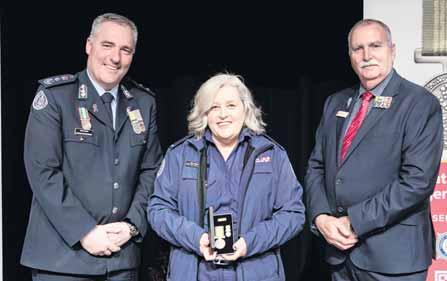 BY RYAN MALCOLM nemedia.com.aurmalcolm@ MEL Evans will always remember the night flames swept through Cudgewa on December 29, 2019. Enjoying a nap on a Sunday afternoon, Ms Evans was woken to news she would be part of her first ever strike team, placing her life on the line as she was deployed to the Walwa complex in the state’s North East, while hot and windy conditions fueled the Upper Murray campaign blaze as it threatened to decimate the surrounding hills. Her efforts to repel the most horrific bushfires Victoria had seen in a decade saw her awarded the National Emergency Medal at a formal presentation at Wangaratta Performing Arts and Convention Centre on Sunday.The10-year veteran of Laceby West fire brigade was one of 63 Wangaratta Group firefighters acknowledged at the weekend for their bravery during the 2019/20 Black Summer campaign bushfires, working to manage fast-moving flames in horrendous conditions throughout Victoria and south-east New South Wales.