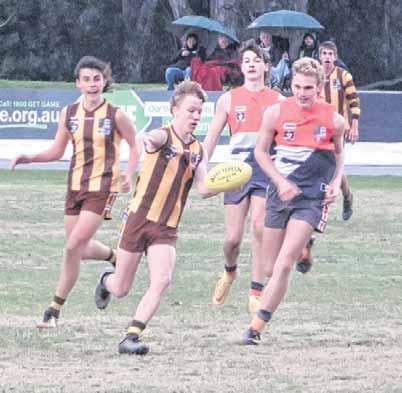 BEST: COLLEGE: Zeke Peebles, Joshua Duffy, Tate Llewellyn, Charlie O’Brien, Harvey Allan, Tom Hill. JUNIOR MAGPIES: Kalti Ross, Baxter McLeod, Harry Allan, Will James, Lukas Cannata, Ollie Parr. GOALS: COLLEGE: Harvey Allan 2; Joshua Duffy 1; Charlie O’Brien 1. JUNIOR MAGPIES: Harry Allan 1; Will James 1; Sam McIntosh 1. ELIMINATION FINAL Bright 2.2 2.2 2.2 4.5.29 Centrals 0.1 1.1 2.1 2.2.14