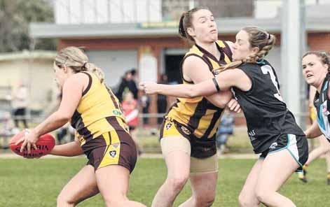TACKLING Lavington Panthers in Sunday’s North East Border Female Football League preliminary final was always going to be a tough ask, but Wangaratta Rovers’ open women were buoyed by the strong show of support at their first home final.The Hawks had never defeated Lavington before, but the buzz word for the game was ‘effort’. They knew that if each player went into each contest, laid each tackle, took each mark and with each kick put in 100 per cent effort, they would come away from the game proud of their 2022 season. The match started hard and fast, with both teams keen to make the first impact on the scoreboard, and neither giving an inch. Emma Gosbell was brilliant in the middle, breaking packs and forcing the ball forward at every opportunity, while Mikaela Trethowan provided run and carry off the half-back line and propelled the ball deep into the Rovers’ forward line, as the Hawks got the first score of the game - a behind. Backline players Kate Burns, Jacinta Findlay, Crystal Stevens and Ally Ballard held their players tightly and attacked each contest with a ferocious intensity, and the quarter ended with Lavington leading by a goal and the Rovers feeling confident they were in the contest. After the quarter time break, the Rovers came out keen to make an impact and apply pressure to the LavingtonLeanneplayers.Branson was brilliant on the wing and speedily got around her opposition player, kicking the ball to the half-forward flank, while Bianca Mulqueen took some fantastic contested marks in the forward half of the ground.JessMaddy, going in hard for the ball, took a nasty knock to the head and came from the ground. Amy Collins dominated the ruck contests, tapping the ball to the advantage of midfield players, while Celia Piesse worked tirelessly all day, making contest after contest. The Rovers were unable to get the ball deep into the forwards until a breakthrough saw Trethowan take a mark and play on to score the Rovers’ first goal of the day. The Hawks went into the half-time break a couple of goals down, but happy with the effort of each player. In the words of 200+ gamer Bron McGorlick: “That is the best first half we have ever played against Lavi”. The third quarter continued much the same as the first half, with Lavington just on top and the Rovers desperately trying to keep in the contest. Jess Byrne laid a fantastic tackle and applied pressure and, following up an outstanding first half, Bron McGorlick continued to be in-and-under, winning the contested ball and moving it to the Hawks’ advantage. Hollie Venness took some great marks and then hit her target down the ground, and Helen Collins ran with her player and never let her get a clean possession. The Rovers held Lavington to one goal for the quarter, but were unable to get any majors on the board, and went into three quarter time trailing by three goals. Lavington got on top of the Rovers in the final term, and the ball spent most of the time in the Rovers’ defensive half. Jo Maples was brilliant and took some great contested marks, while Amy Hopkins pushed up the ground a bit and won the ball before hitting up Deb Platfuss with a greatMegankick.Quick moved into the forward line and attacked the ball, winning a good contest at ground level, then got the ball out to Kat Ginnivan, who ran past quickly and moved the ball forward.Itwasn’t to be for the Rovers, going down to a Lavington team that was just too good, and will face Wodonga Raiders in next weekend’s grandFinalfinal.score: Lavington Panthers 6.5 (41) defeated Wangaratta Rovers 1.3 (9). Goal: Mikaela Trethowan.