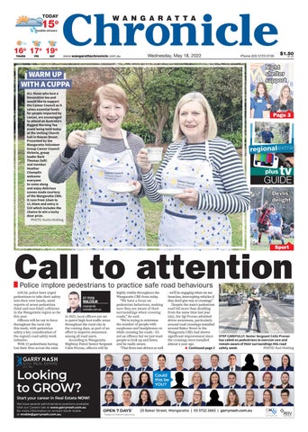 - we’ll be engaging when we see breaches, intercepting vehicles if they don’t give way at crossings.” Despite the state’s pedestrian road toll more than doubling from the same time last year (six), Snr Sgt Provan admitted driver awareness, particularly around road crossings installed around Baker Street in the Wangaratta CBD, had shown significant improvement since the crossings were installed almost a year ago. ■ Continued page 2