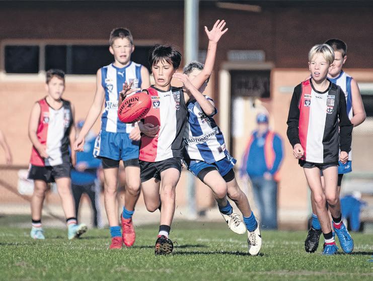 PIVOT: Luke Kelly evades a chasing Myrtleford Saints player on Saturday during the Kangaroos match at North Wangaratta Recreation Reserve. The Roos players have been eager to return to the Wareena Park Oval all season. PHOTO: Melissa Beattie