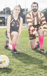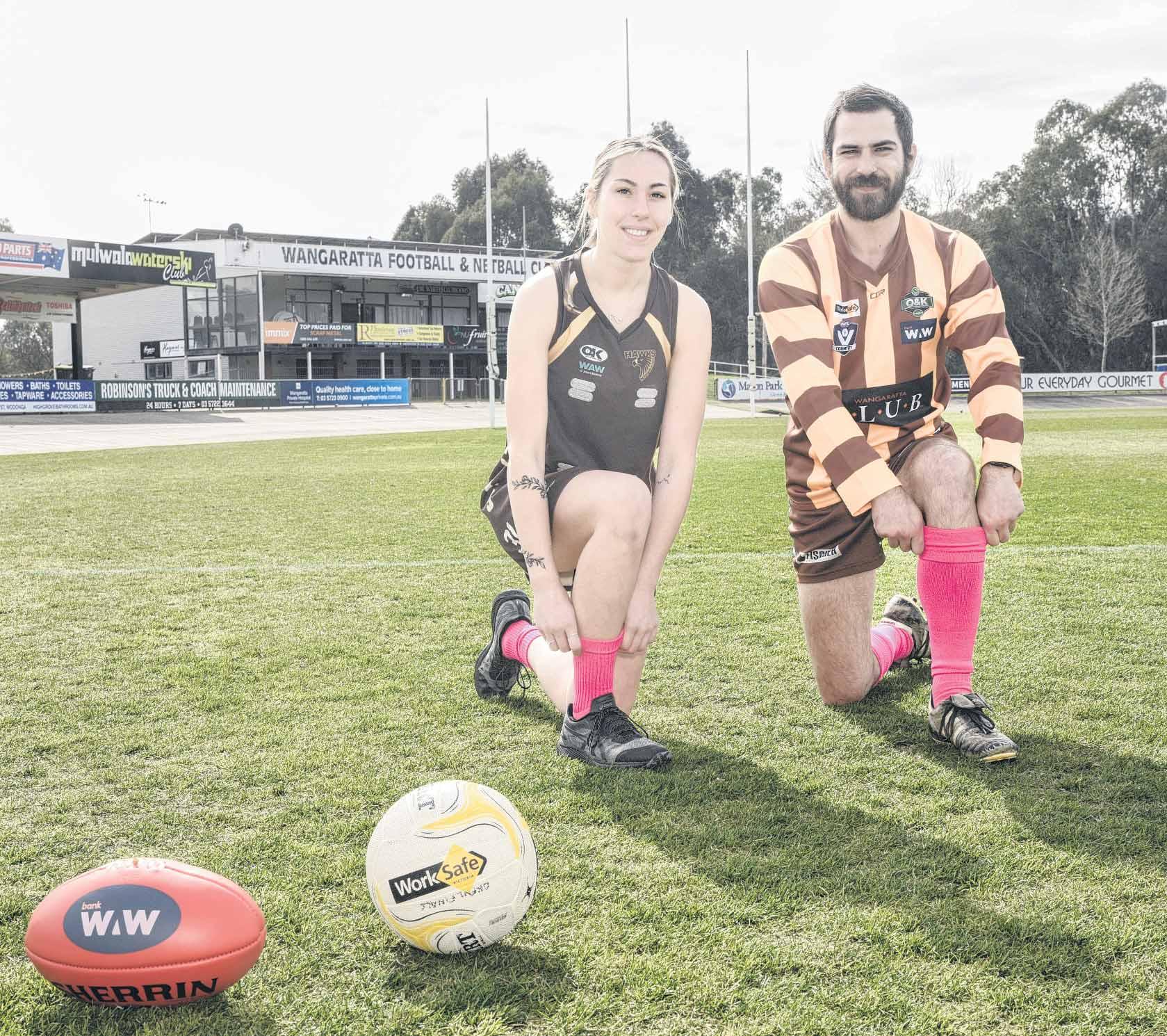 TOMORROW’S ‘Terry Socks it to Cancer’ round in the O&K FNL will see footballers and netballers, like North Wangaratta’s Haley Cunningham and Pat Kelly, will wear brightly coloured socks to raise money for the Albury Wodonga Regional Cancer Centre. Story page 34.