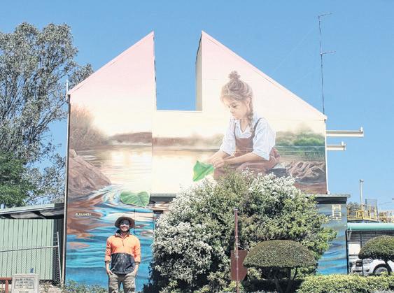 The large-scale mural of a child on the banks of the Ovens River was created by renowned mural artist Julian Clavijo.