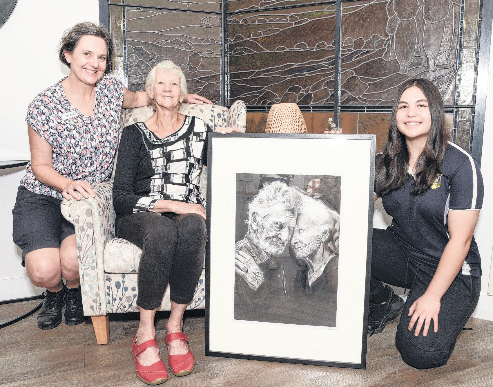 AN impressive pencil and charcoal drawing created by Wangaratta High School student Rosie Bulmer is set to be treasured at Illoura Residential Aged Care, after the teen presented it to residents as a gift of gratitude.