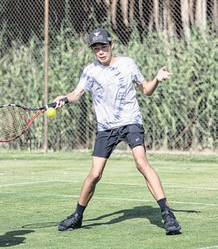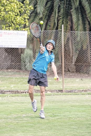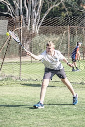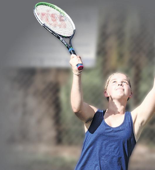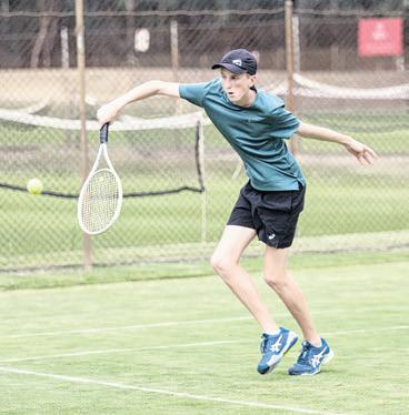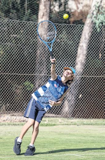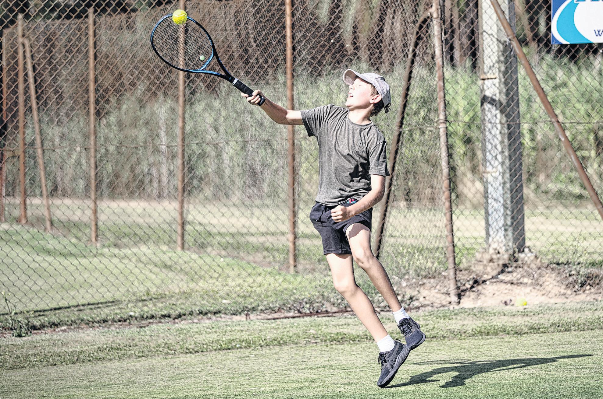 REID Scholes leaps to get to the ball in WLTCP junior tennis on Saturday.