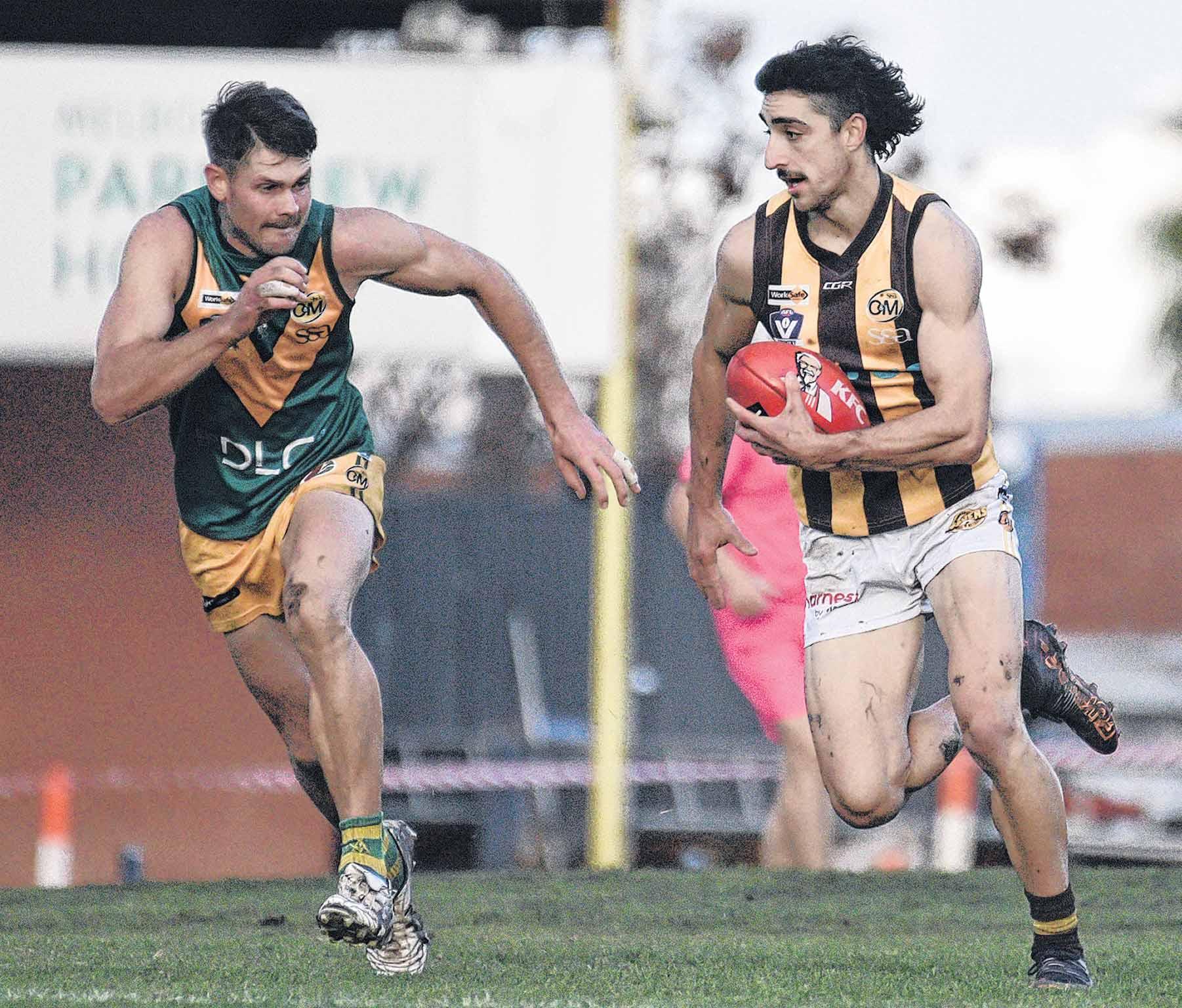 WANGARATTA Rovers can do with a much-needed percentage boost ahead of finals in two weeks. The Hawks face North Albury at WJ Findlay Oval tomorrow and currently sit one game inside the top five, only behind Lavington on percentage, but with a game against Albury next week, their finals hopes could well come down to Myrtlefordpercentage. sit behind the Rovers in the sixth position but they have two incredibly winnable games against Wodonga Raiders and CorowaRutherglen to come. The Panthers then come up against Wangaratta this week and Wodonga Raiders in the final game so they’re expected to win at least one of their next two.Ifthe Hawks were to win this weekend but lose to the Tigers, Lavington was to go down to the Magpies but salute against Raiders, and the Saints took out their next two, all three sides would be equal on points with percentage to decide the final spot in the five. “We’re only 0.2 of a per cent behind Lavington so hopefully we can rectify ours a little bit this weekend,” Wangaratta Rovers operations manager Barry Sullivan said. “It’s good for the league that it’s so close, we all predicted at the start that it was going to be a close season and that’s what we“Wodonga’shave. beaten us and Myrtleford, and Lavington’s come out of the clouds.” Despite the Hawks going into tomorrow’s match as firm favourites, Sullivan admitted they won’t be taking the Hoppers lightly. “First of all we really need to knuckle down,” Sullivan said. “We’ll be respecting them and hoping we can come out and play four quarters of good, solid“Hopefullyfootball. we can play well and take some confidence away from Wangarattait.” Rovers will be without star on baller Jake McQueen for the rest of the season after suffering a torn meniscus, while Cody Schutt may also be unavailable for this“Jake’sweekend.amassive out, he’s a great player but an even better bloke so we’re going to miss him heaps,” Sullivan said. “Cody Schutt may be out as well so that won’t be helpful but hopefully we’ll get Lukas Webb back in this weekend. “We got ‘Muz’ (Sam Murray) back last weekend as well and he’ll only be better for the run.”