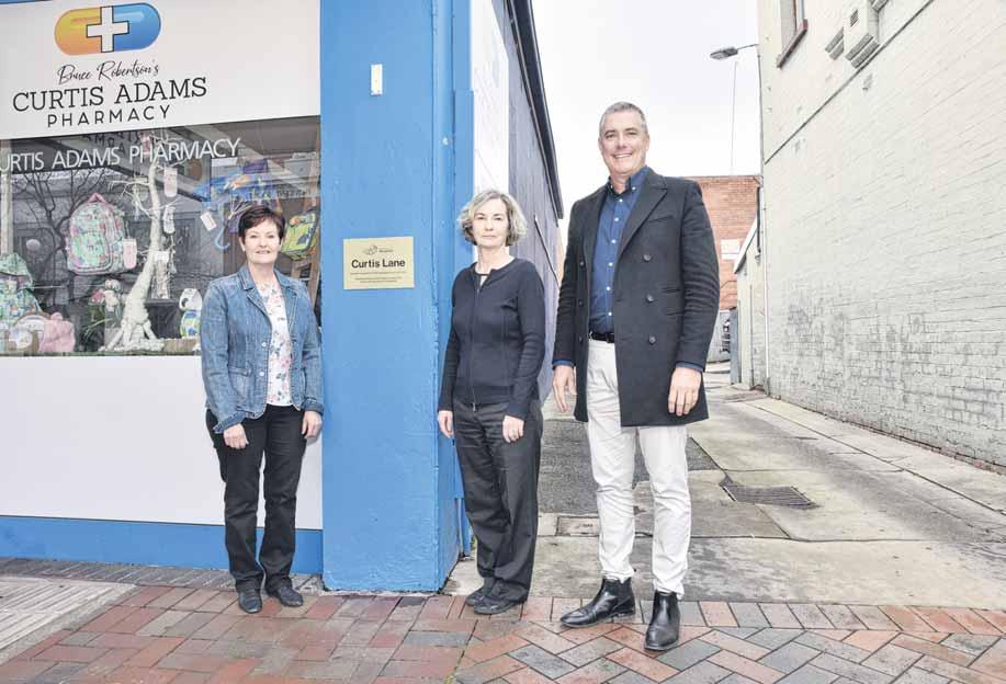 By STEVE KELLY THE laneway next to Curtis Adams Pharmacy on Reid Street has been officially named Curtis Lane as a tribute to the late Graham and Lois Curtis.Itcame about after the family of Mr and Mrs Curtis made a submission to council requesting the naming of the laneway be considered at a council meeting in November 2021. A plaque was recently installed on the external wall of Curtis Adams Pharmacy which highlights the name. Kristine Crockett and Karyn Rowe, daughters of Graham and Lois, were thrilled to see the lane named in honour of their parents.“Itgoes back a couple of years when my sister and I were having a conversation with Mayor Dean Rees and thought it would be a good idea to honour our parents because they had a lot to do with Wangaratta and the pharmacy,” Mrs Crockett said. “Mum and Dad would be smiling up there knowing that the lane is now named after them.“We thank council, Mayor Rees and the community in support of this tribute.” Mayor Rees said the installation of the plaque is such an important step in recognising these two extraordinary community“Grahammembers.andLois were hard working, respected business people and cherished members of this community, having this lane named after them is a small recognition of our appreciation of their contributions,” heGrahamsaid. and Lois Curtis moved to Wangaratta in 1960 to take up residence above an existing pharmacy in Murphy Street. Graham purchased the pharmacy, becoming a business owner and local pharmacist. The family remained as residents above the pharmacy for nine years. In 1969 the pharmacy relocated to its current location at 46 Reid Street. The pharmacy later merged with Peter Adams Pharmacy and is known today as the Curtis Adams Pharmacy. The building is owned by the CurtisLoisfamily.Curtis opened a gift store in Murphy Street in the 1960s named Gifts Galore, which relocated to 44 Reid Street in the early 1970s making it a neighbour across the laneway to the pharmacy.GiftsGalore later relocated back to Murphy Street. Graham was associated with many organisations - as a member and office bearer - in Wangaratta including Jaycees, Wangaratta Chamber of Commerce, Merriwa Masonic Lodge, Wangaratta Flood Committee, Rotary Club of Wangaratta (life member), Friend of the Wangaratta Festival of Jazz, Rotary Club of Milawa Oxley, and Police Independent Mentor.Loiswas also involved in the community, undertaking roles with groups such as: Committee of Miss Premier Town, Christopher Robin Kindergarten, Business and Professional Women’s Association, and Friends of the Hospital.ThePlace Naming Committee, which advises council, considered the Curtis family’s request and believed the information regarding Graham and Lois was worthy of recognition through the naming of the laneway.