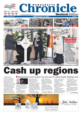 AUSTRALIAN.AUTHENTICALLY Next phase beginsNext phase Page 3 Albion to be revamped into into office spaceoffice space Page 7 feverffinalsfFootyFootyinalsever Sport TODAY Showers easingShowers 14 14o SATSAT 13 13o SUNSUN 13 13o MONMON 15 15o TUETUE 13 13o www.wangarattachronicle.com.au Weekend Edition$1.50 INC. GSTPhone (03) 5723 0100 FRIDAY, August 19, 2022