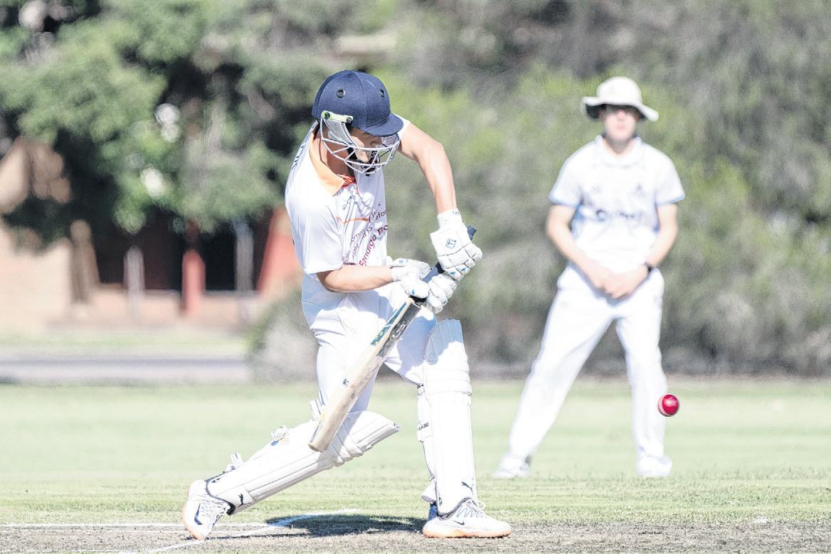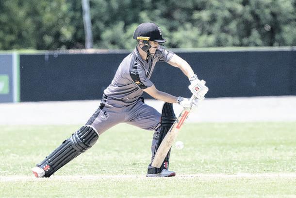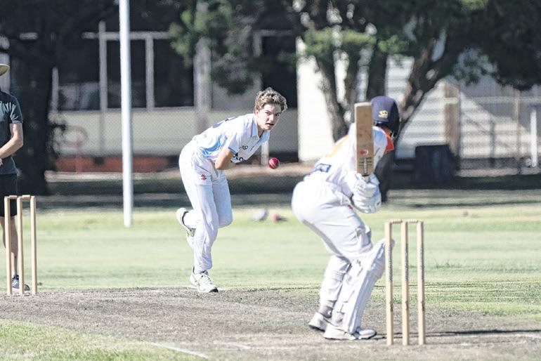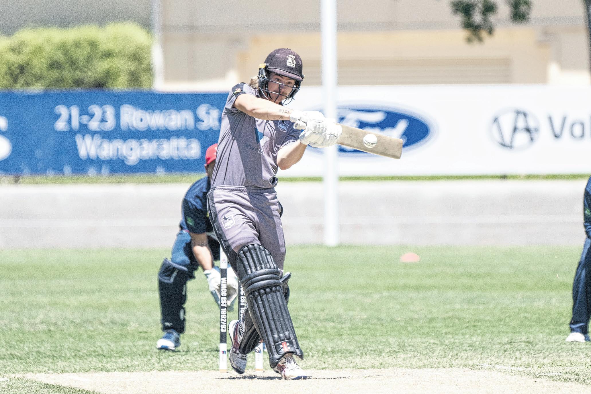 PULLED AWAY: Cooper Matheson rocks back and pulls a shorter delivery away through the leg side.