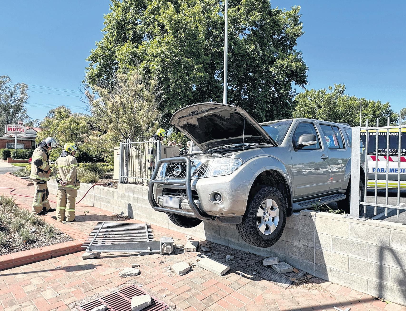 Acting Sergeant Col Boyle of Wangaratta police said emergency services responded to the incident around 10am to see the vehicle resting past the fence line, with the hood of the car open and debris scattered on the Reid Street footpath.
