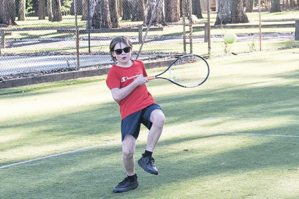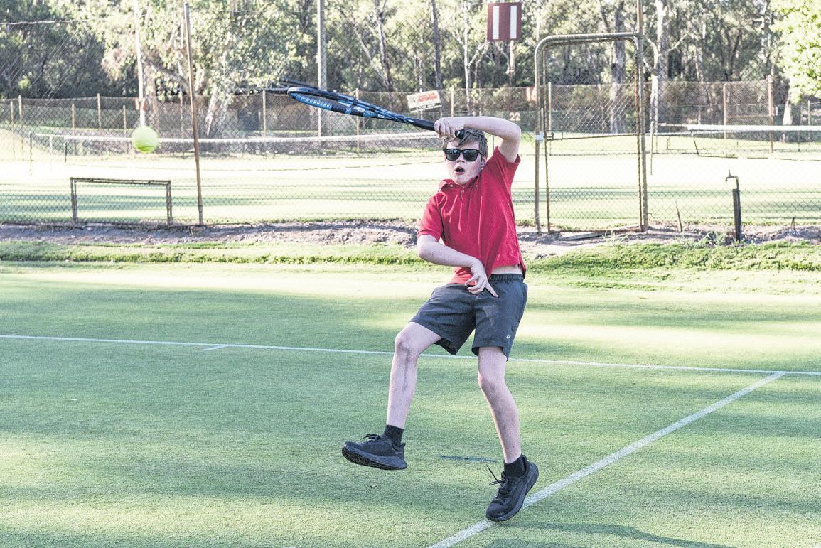 FOCUS: Mason Scholes looks to put some top spin on his shot.