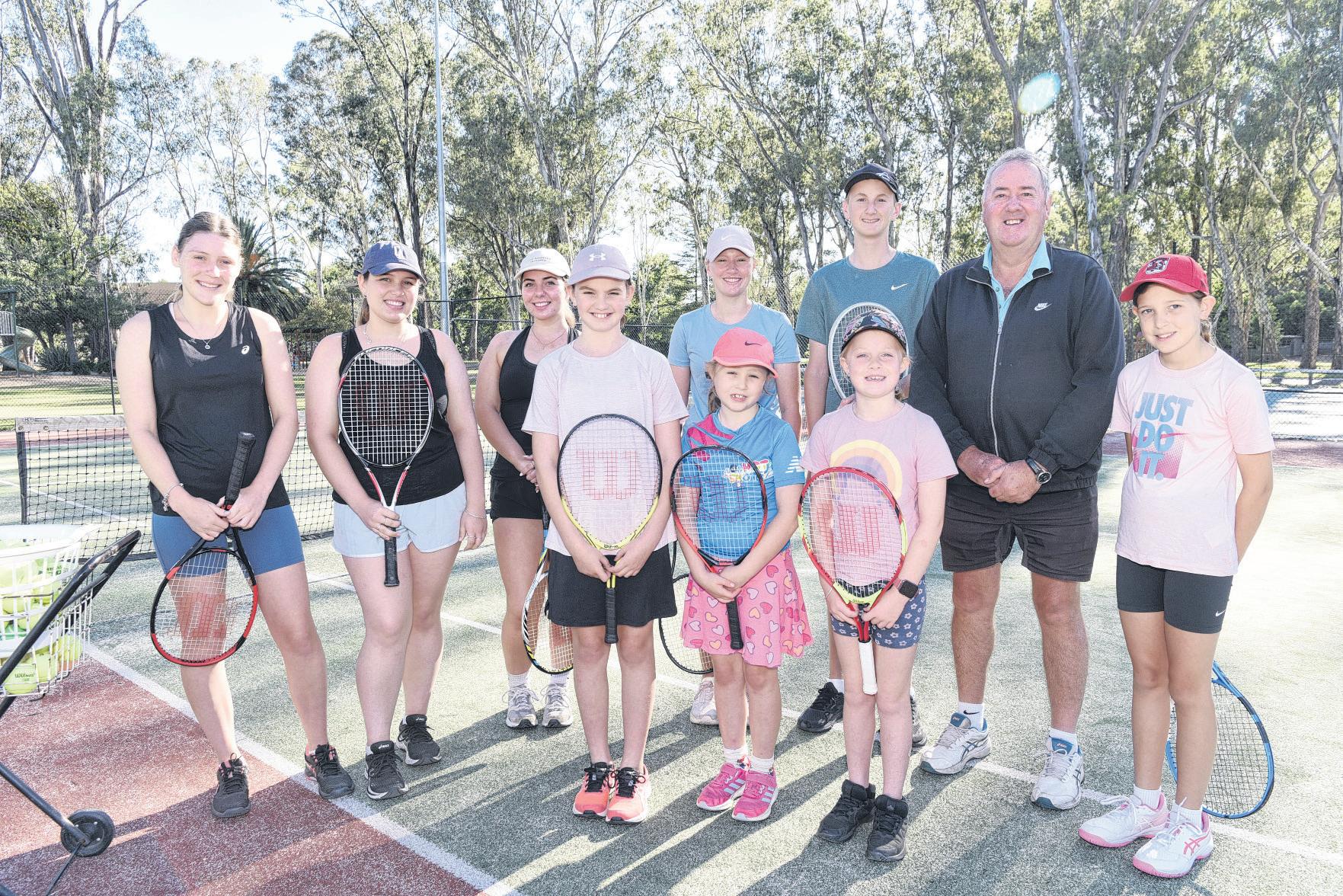 PUTTING IN THE WORK: (Back from le ) Bridie Murphy, Grace Birthisel, Sarah Birthisel, Matilda Dean, Henry Dean, coach Greg Duns, Zoe Flynn, (front from le ) Lily Yensch, Lexi Yensch, and Scarlett Walsh were hard at work on Saturday morning.