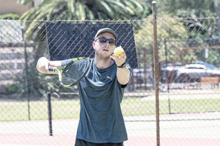 SERVICE: Mark Wettern prepares a booming serve. PHOTOS: Kurt Hickling