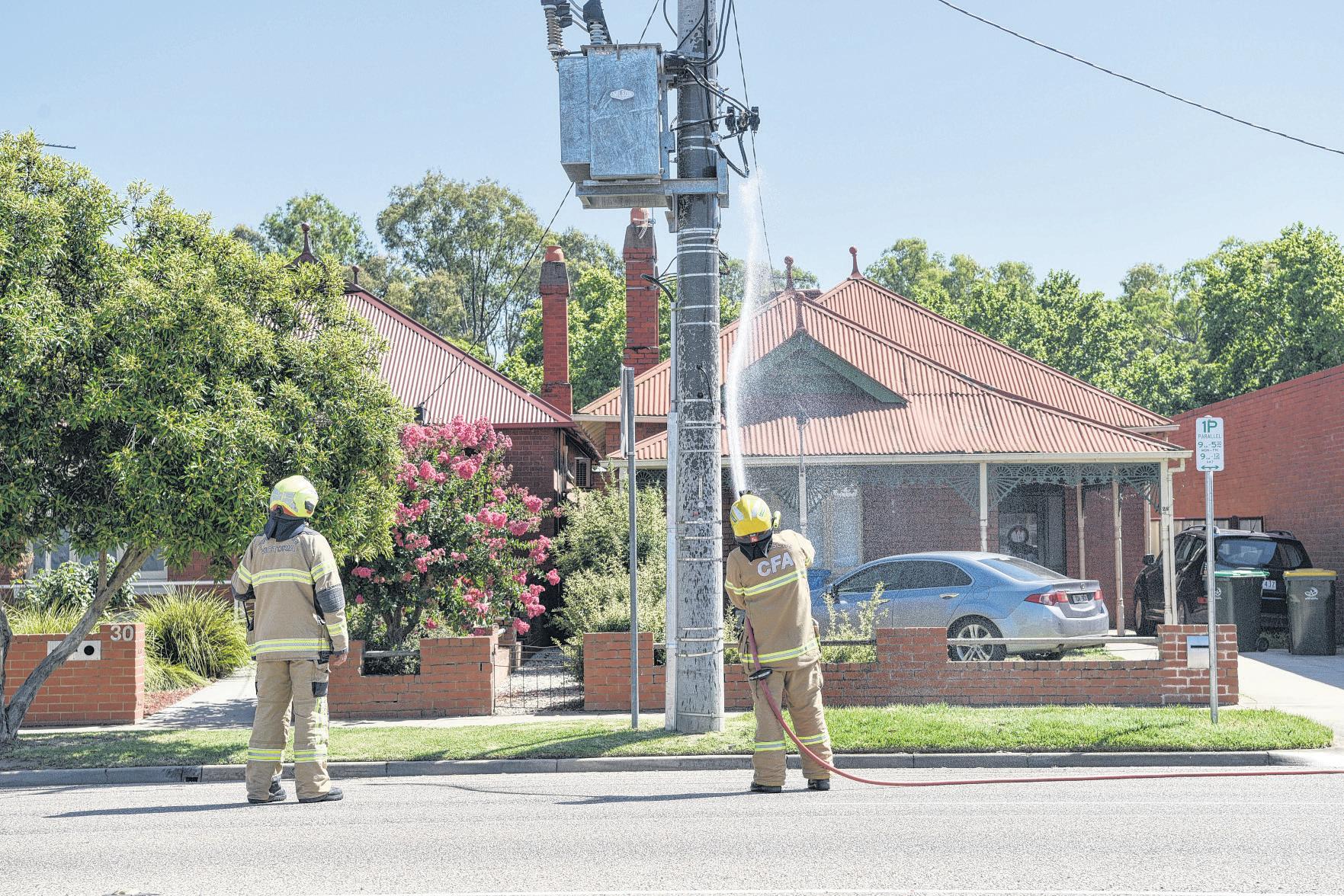 A Fire Rescue Victoria (FRV) spokesperson said emergency services were called to nd a transformer in ames on a power pole on Rowan Street around 10:50am on Tuesday morning.