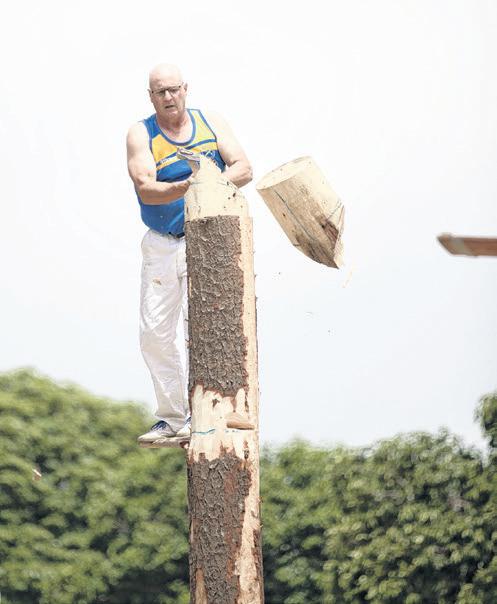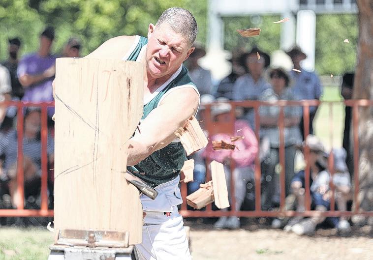 Spectators flocked to watch the tree climbing at the Wangaratta Sports Carnival woodchopping, where Will Hoyle (pictured) and three others defied gravity and hewed through timber.