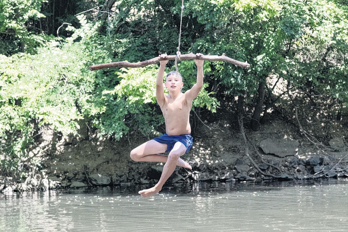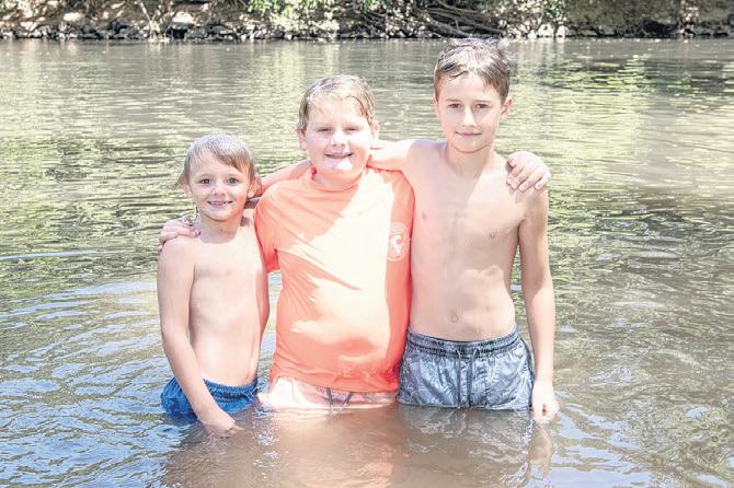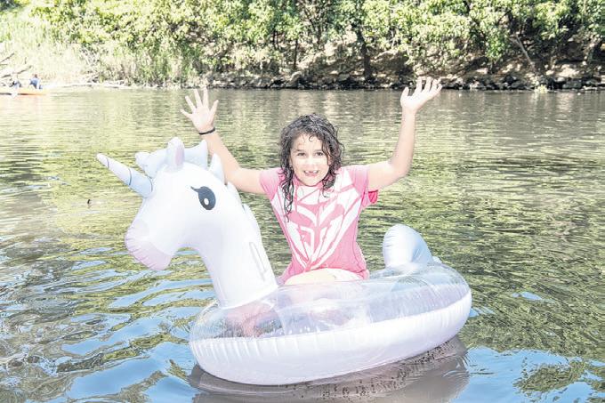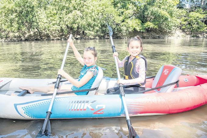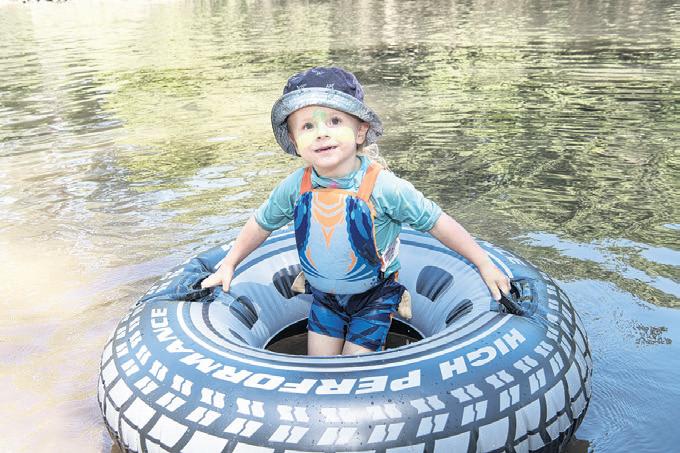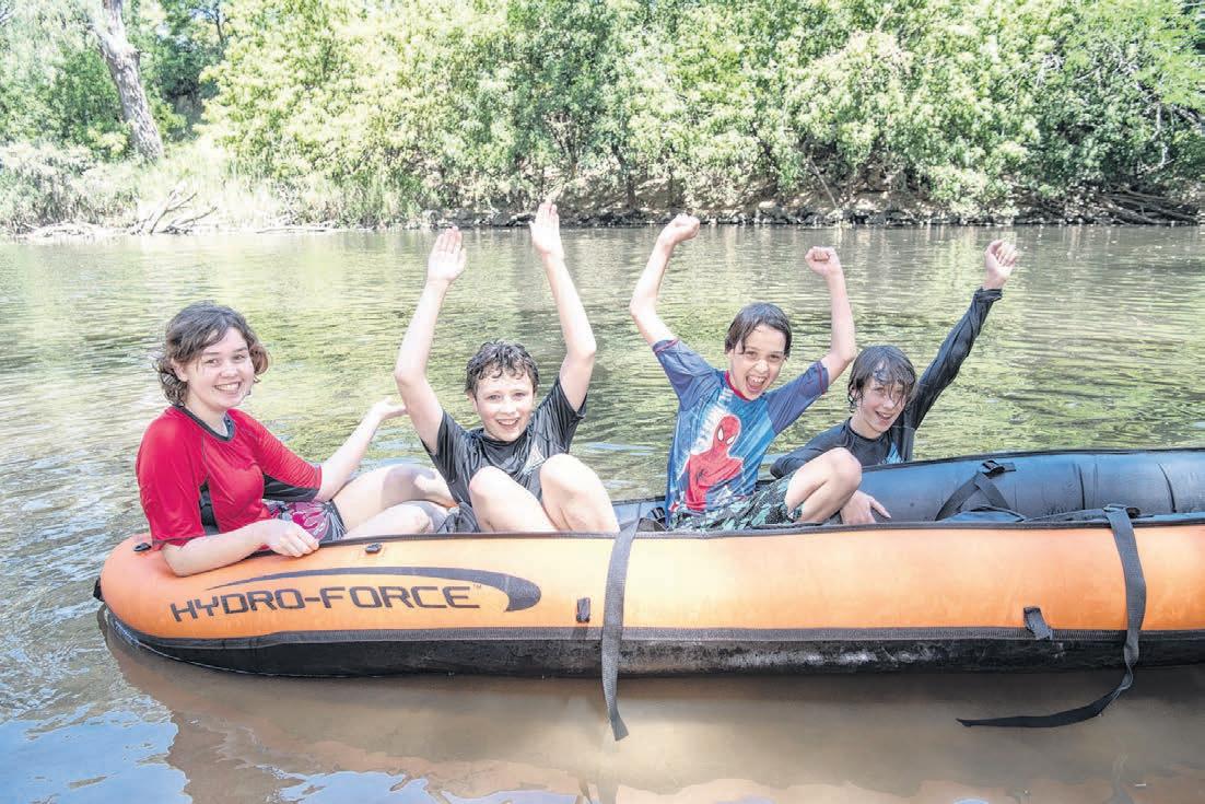 RIVER CRUISE: Liv Kaye (le ), Elijah Knopp, Jarvis Kaye and Charlie Knopp enjoyed Monday a ernoon in the water at Frank Garth Reserve as they tried to escape the heat of the day, with maximum temperatures reaching 39.6 degrees in Wangaratta, according to the Bureau of Meteorology. The Bureau forecasts