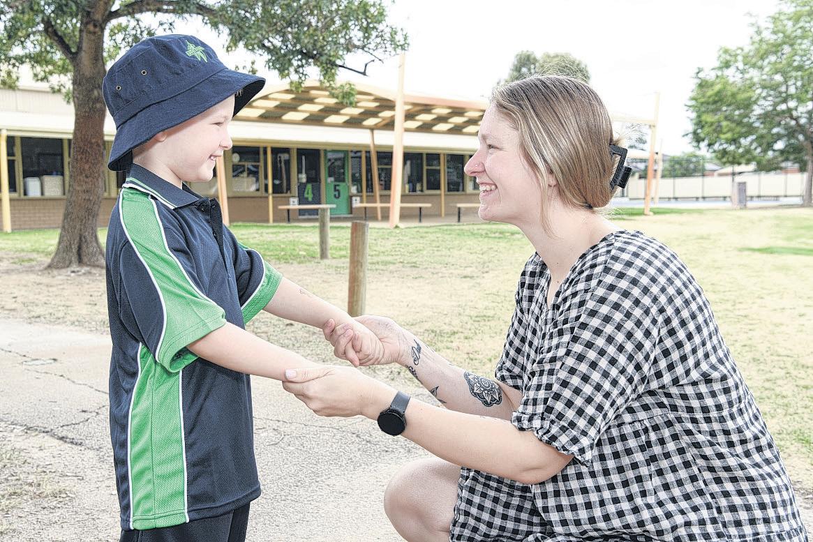 READY TO LEARN: Hunter Lorman shares a moment with mum Amy
