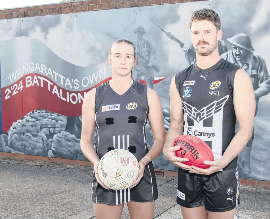 Magpies captains Hannah Grady and Jackson Clarke will lead their teams into the fray in their ANZAC Day matches against Myrtleford on Friday. A small ceremony will be held just before the senior football match at 3pm at the Wangaratta Showgrounds.