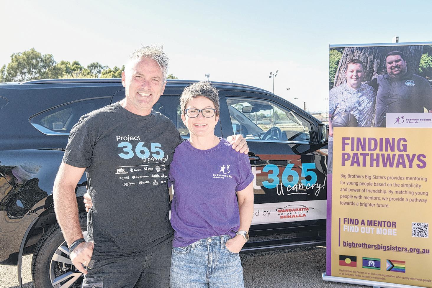 BRINGING LIGHT TO THE DARK: Pete Rourke, Project 365 founder, and Caz Sammon, Big Brothers Big Sisters Wangaratta mentoring coordinator, are looking forward to Saturday’s Project 365 show, where announcements about the distribution of funds from the previous event will be made, further assisting locals.