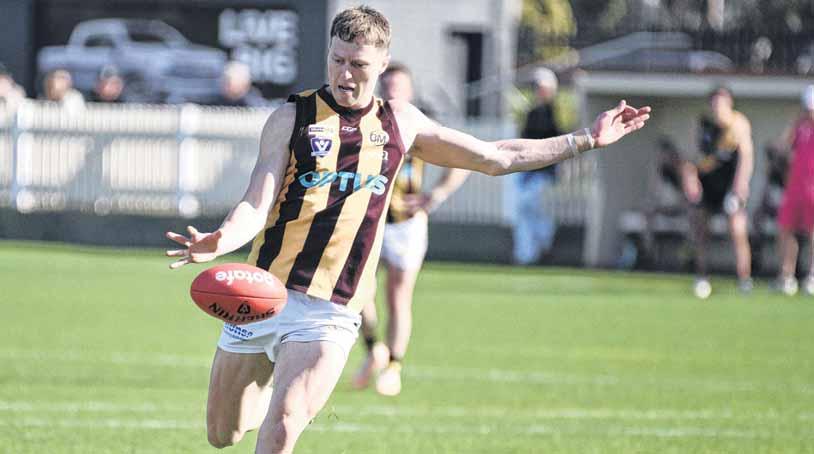 FORWARD PRESS: Kyle McQuade boots the ball through the middle of the ground.
