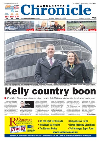 Wangaratta Ph: (03) 5721 7002 | Albury Ph: (02) 6023 5524 | Myrtleford Ph: (03) 5752 2666 | Corowa Ph: (02) 6033 2233 | Rutherglen Ph: (02) 6032 7522 www.rjsanderson.com.au wangarattachronicle.com.au THE CHRONICLE, Monday, August 21, 2023 - Page 1 $1.80 INC. GST www.wangarattachronicle.com.au Phone (03) 5723 0100 Monday, August 21, 2023 TODAY Possible shower TUE WED THURS 17 17o 16 16o 16 16o 17 17o B i k i e s l i n ke d t o J u l y Bikies linked to July M u r p hy S t r e e t b l a z e Murphy Street blaze Page 3 Good Friday appeal Good heroes celebrated Page 5 O&K finals locked in Sport