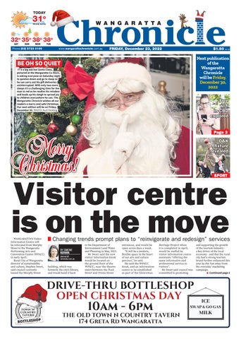 BE OH SO QUIET IT’S a big ask but Santa Claus, pictured at the Wangaratta Co-Store, is asking everyone on Saturday night to quieten down and go to sleep so he can carry out his gift deliveries uninterrupted. With only two more sleeps it’s a challenging time for the man in red as he readies his reindeer and loads up his sleigh to spread joy to children everywhere he can. The Wangaratta Chronicle wishes all our readers a merry and safe Christmas. Our next edition will be on Friday, December 30. PHOTO: Kurt Hickling