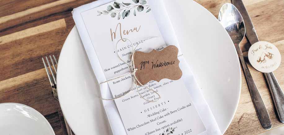 Then it’s time for the all-important reception where couples can choose from traditional alternate plated meals to a cocktail style, all paired with beautiful wine from Buller Wines.
