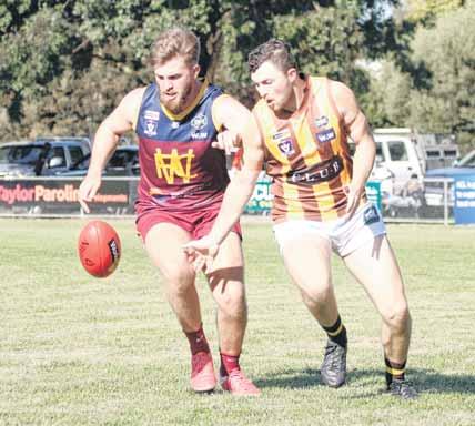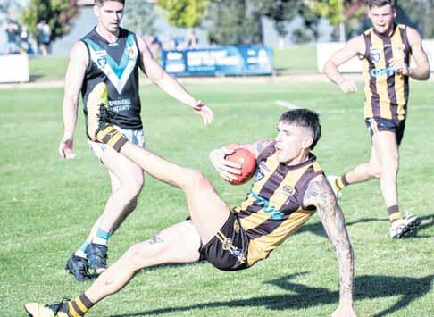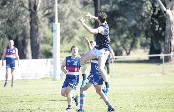 GOOD GRAB: Alex Marklew kicked four majors in Wangaratta Rovers’ win over Lavington. PHOTOS: Kurt Hickling