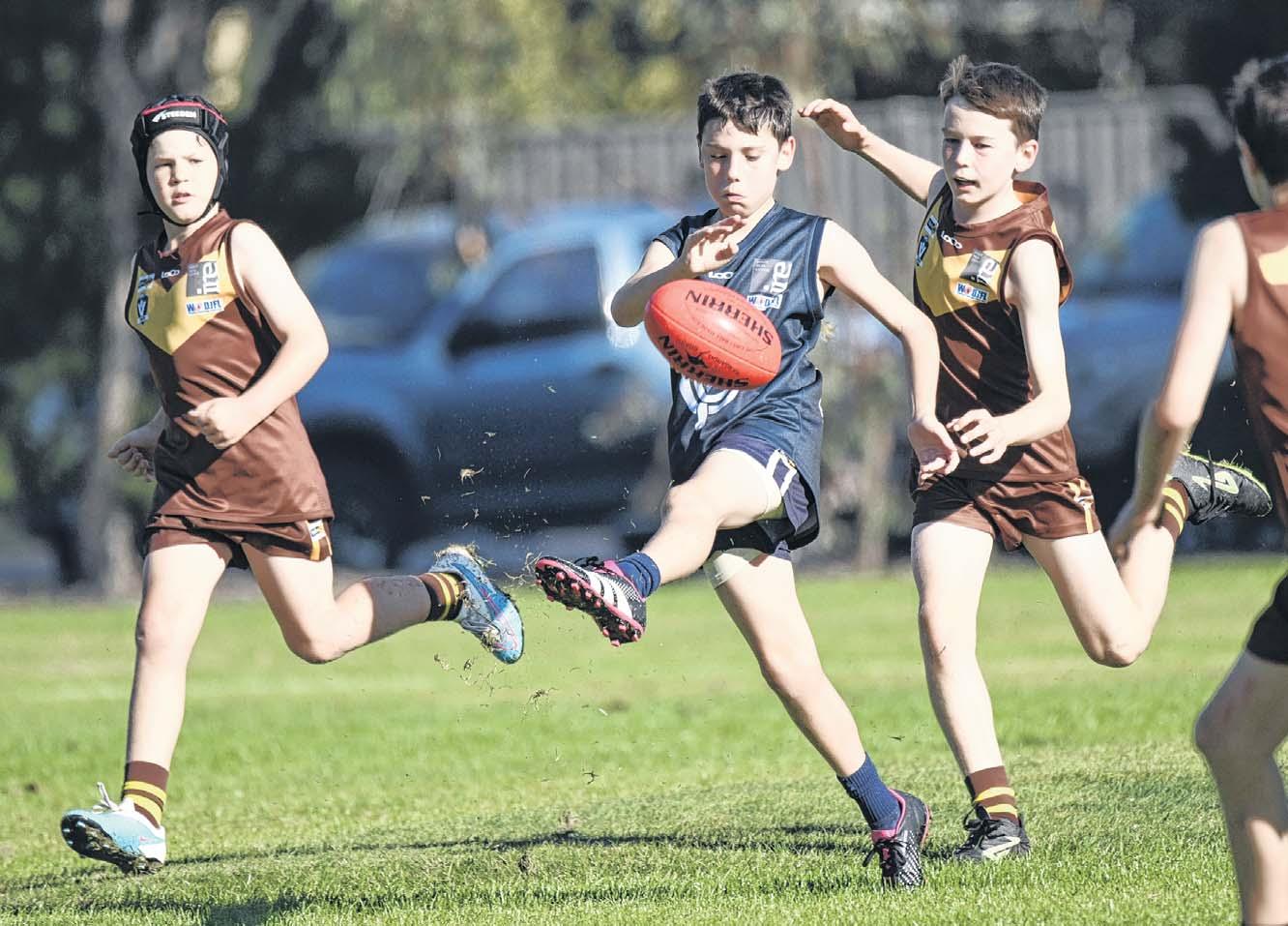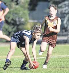 COLLEGE under 12 star Jack Tonkin sends his side forward against Centrals on Saturday.