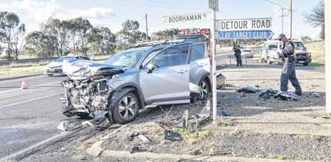 By RYAN MALCOLM TWO motorists were transported to hospital after their vehicles collided at North Wangaratta late yesterday afternoon.Bothvehicles were written off in the collision, which is said to have occurred at the intersection of Bowser and Boorhaman roads around 3:30pm. Sergeant Phil Pelgrim of Wangaratta police said a vehicle attempting to cross traffic onto Bowser Road southbound from Boorhaman Road had allegedly failed to give way, colliding head on with a vehicle travelling northbound.Thenorthbound vehicle was said to have come to rest on the median strip, while the other was spun into a fence. MICA paramedics, firefighters and police attended the scene. The condition of both drivers was unable to be confirmed at the time of going to print yesterday afternoon.