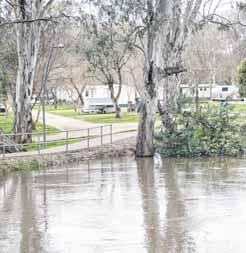 By RYAN MALCOLM CONTINUED flooding along the Ovens and King rivers could see some roadways throughout the rural city closed, with the former expected to peak at almost 12.2 metres tomorrow. Heavy rainfall throughout the Alpine and King valley regions late last week saw river levels rise rapidly into the weekend, with the King River at Docker Road passing the minor flood level (3.7m) on Friday evening, two days before the Ovens (11.9m minor flood level) began to break its banks in Wangaratta. Both rivers remained above the minor flood level yesterday, with the Ovens (12m) expected to rise over the next 24 hours following a consistent downpour at Mount Hotham which has seen more than 60mm fall since lastTheThursday.GreatAlpine Road was promptly closed between Porter Street and Detour Road on Sunday evening as Yellow Creek broke its banks, while an anticipated peak of just shy of 12.2m would see floodwaters encroach significantly on Apex Park and Painter’s Island.