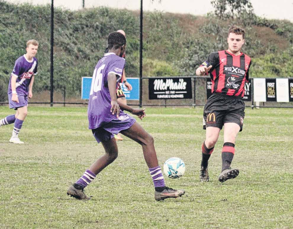 PHOTO: Grace Kerwin Centrals’ defender Sam Rourke kicks out from the goal square in their clash