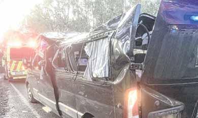 LUCKY: Passengers were lucky to survive after a toppling tree caused the roof of their 12-seat mini-van to collapse inwardswere luck to surive yesterday morning.