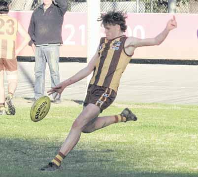 PHOTO: Kurt Hickling LEADER OF THE PACK: Luke Pensak gets some air time as he boots the ball clear of the contest.