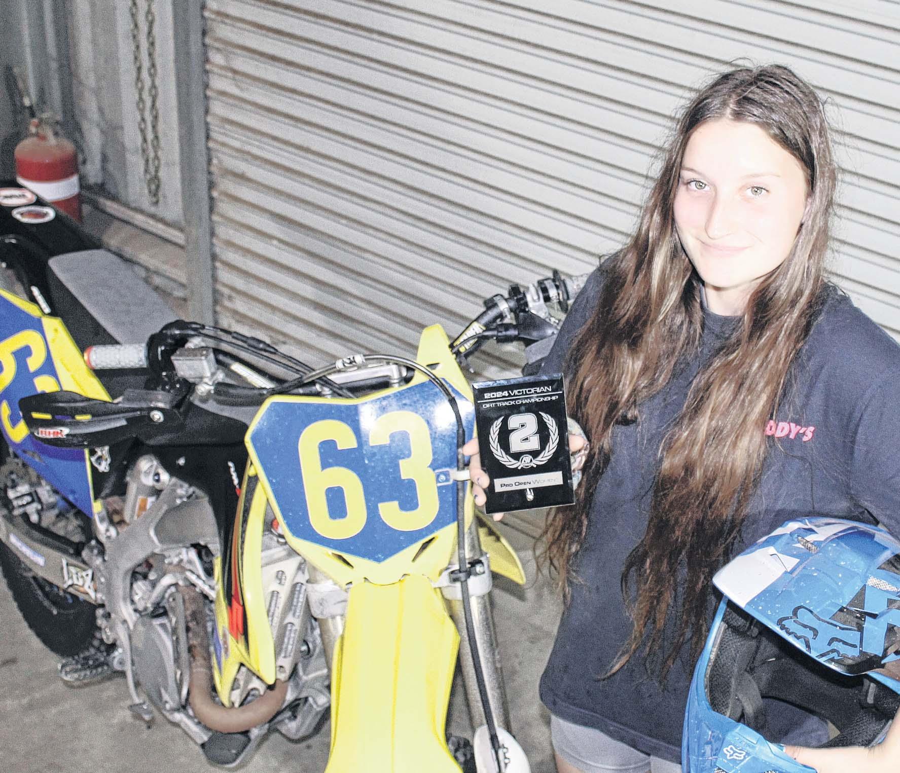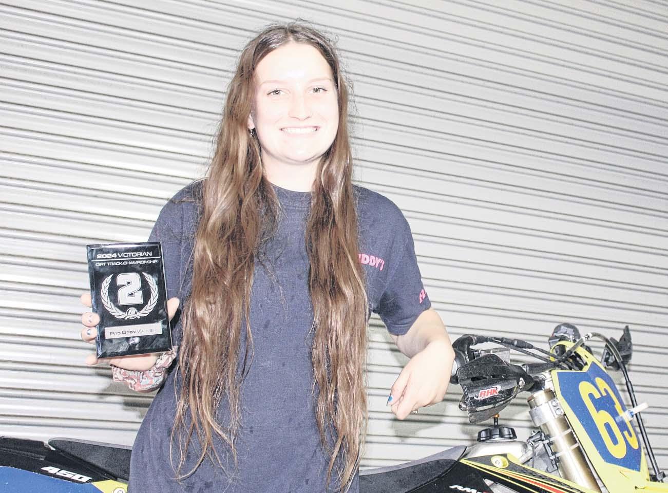 Local dirt bike rider Abbey Wason finished second at the Victorian Dirt Track Titles in Albury. Story page 35