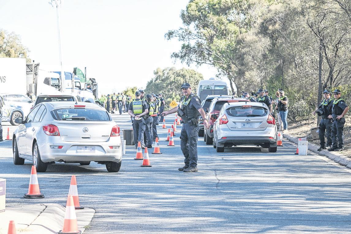 THIS WAY PLEASE: A major police presence was seen at Glenrowan and Springhurst on Friday and Saturday as o icers directed virtually every vehicle to designated testing areas. PHOTO: Mark Jesser/Border Mail