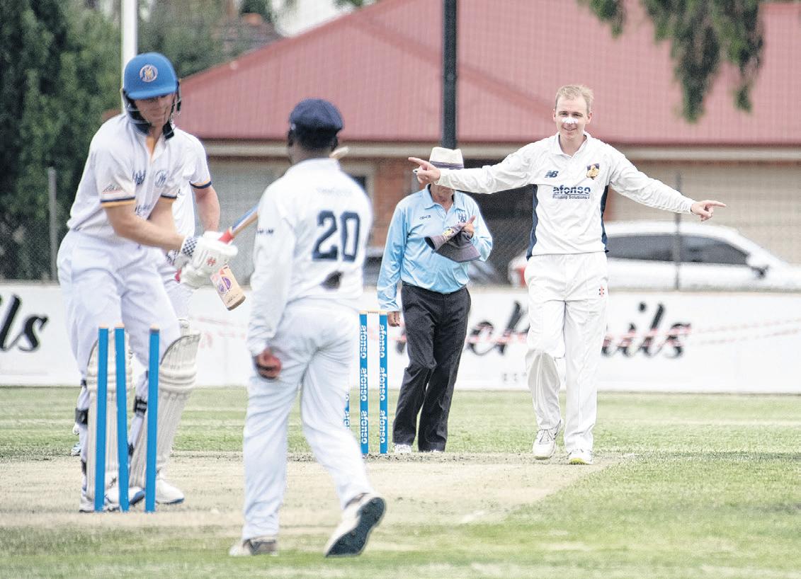 Yarrawonga Mulwala won the toss and elected to bat, a decision which back red in the eighth over when Jacob Schona nger got one to sneak through Ben Walsh’s defence before nding the edge of Angus McMillan’s bat the very next ball.