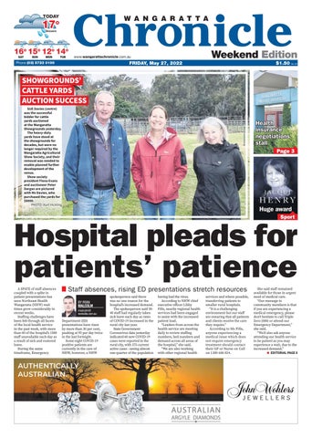 Hospital pleads for patients’ patience A SPATE of staff absences coupled with a spike in patient presentations has seen Northeast Health Wangaratta (NHW) wait times grow considerably in recent weeks. Staffing challenges have been felt through all facets of the local health service in the past week, with more than 60 of the hospital’s 1500 staff unavailable each day as a result of sick and rostered leave. During the same timeframe, Emergency