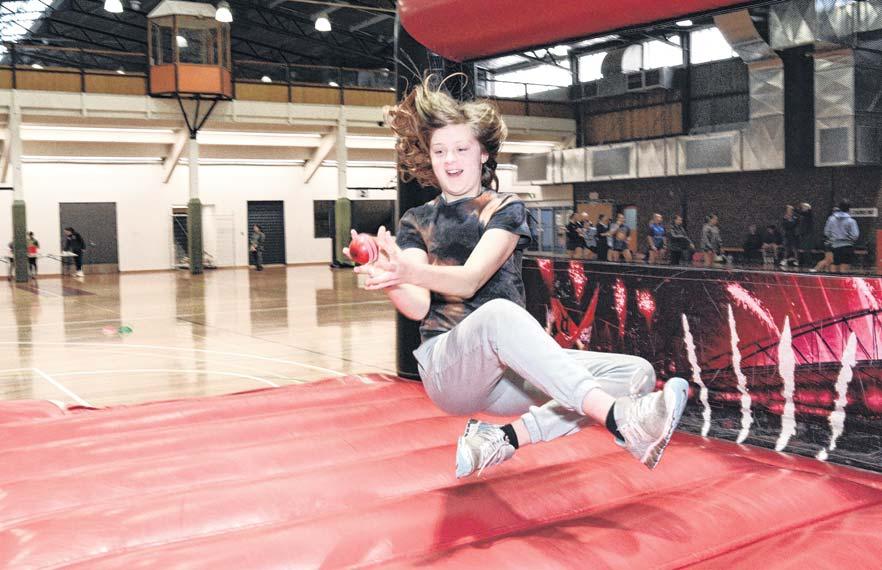 HOWZAT: Kiana Fitzpatrick takes a screamer in mid air.