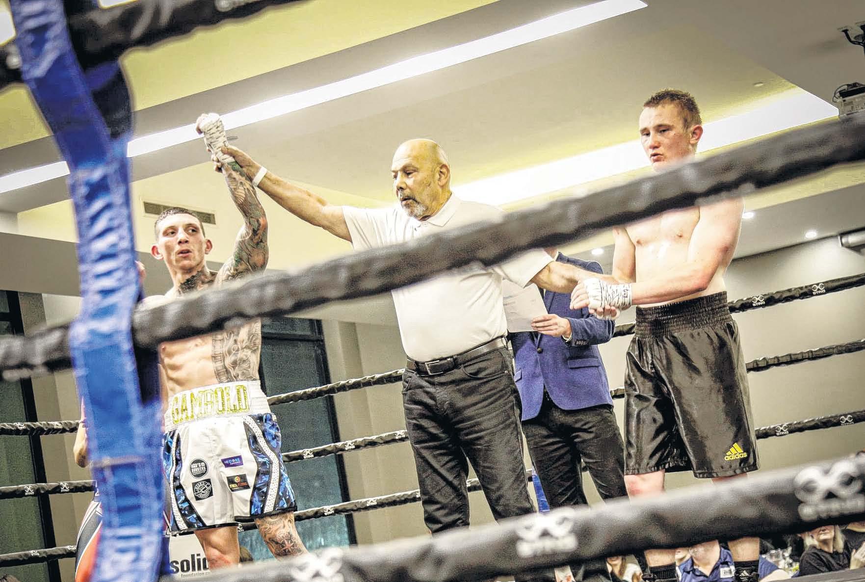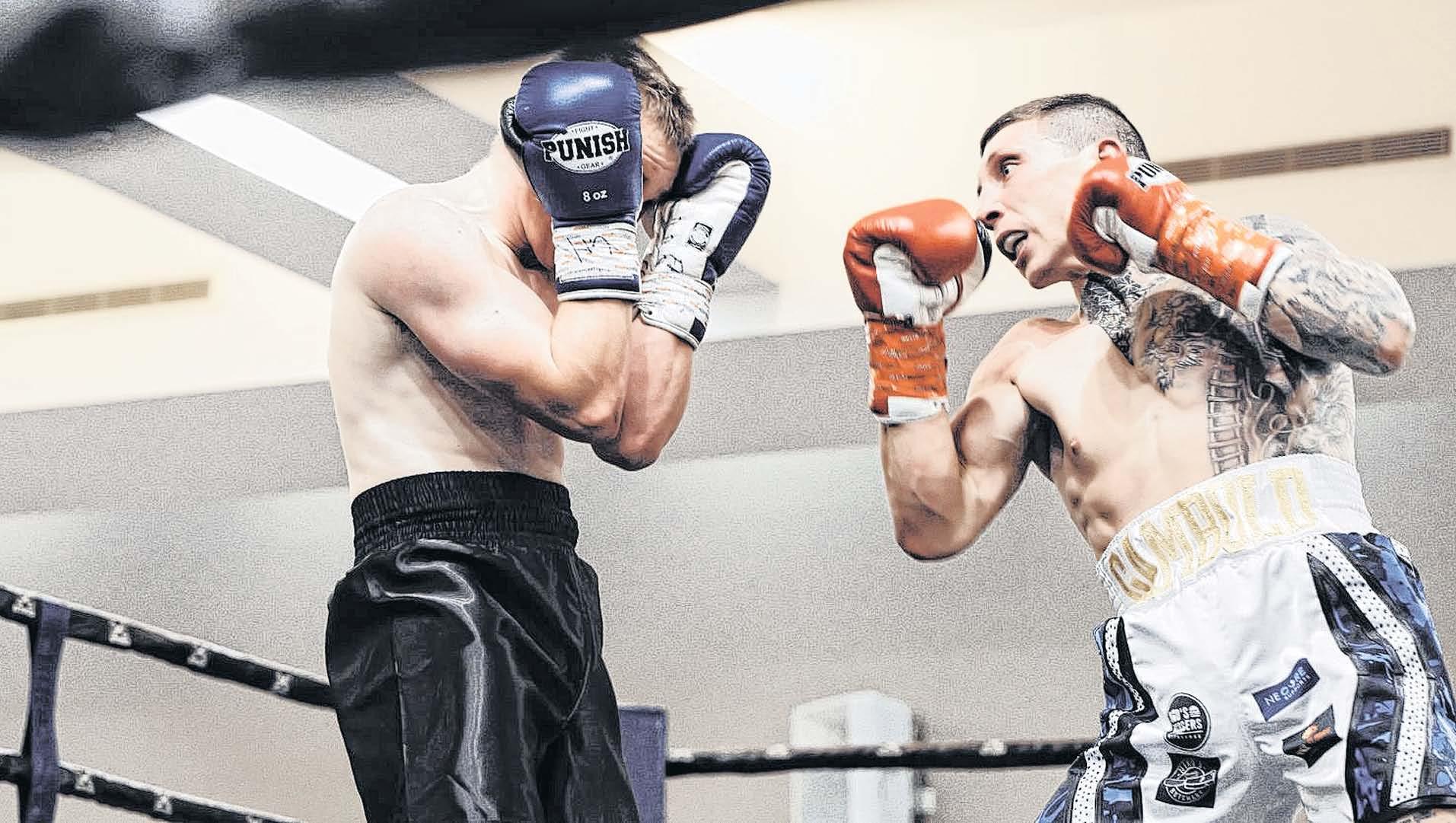 wangaratta’s michael gambold (right) presses his opponent in his debut professional win.