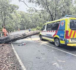 JOINING FORCES: Wangaratta SES members worked to clear a tree on MansfieldWhitfield Road for paramedics to attend to an accident in Whitlands on Wednesday afternoon.