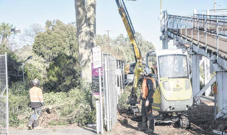 THE Cusack Street pedestrian bridge over the North East rail line at Wangaratta station permanently closed yesterday and works began on the removal of four scented gum trees and understorey on the Norton Street side of the railway line.